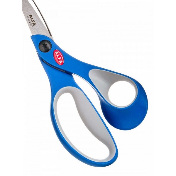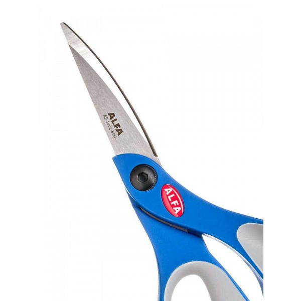 Ручки этих ножниц имеют прорезиненные поверхности и усиленную конструкцию. Модель может использоваться для работы с плотными материалами и кожей. Лезвия из нержавеющей стали помогут в раскрое сложноизогнутых деталей.