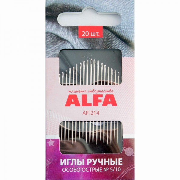 Набор из двадцати игл разного размера (5/10). Кончик такой иглы особо тонкий и острые, поэтому они отлично шьют плотные ткани, изделия из нескольких слоёв и другие материалы.