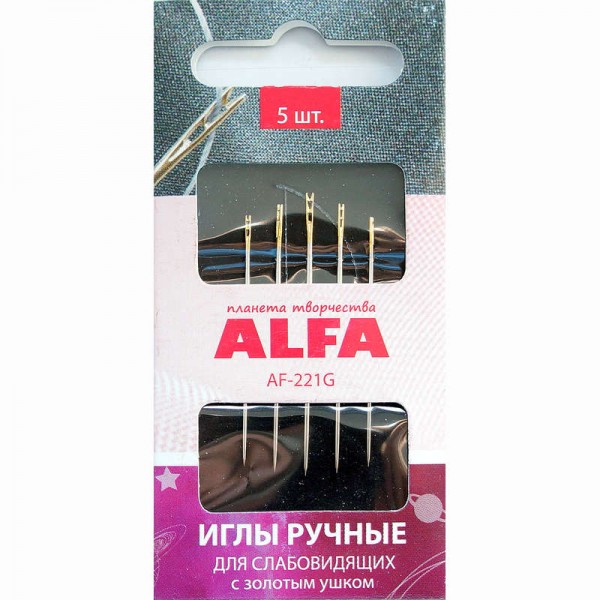 Пять игл со специальным ушком предназначены для людей со слабым зрением. Прорезь в верхней части ушка пропускает иглу внутрь при небольшом нажатии сверху.