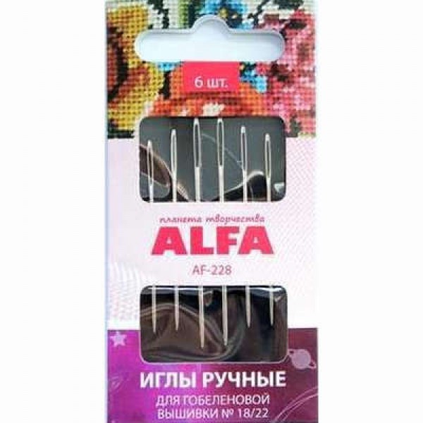 Шесть специальных игл для работы в технике гобеленовой вышивки. Их ушко предназначено для плотных нитей, скомбинированных между собой (включая металлик). Острие круглой формы раздвигает нити полотна, без повреждений.