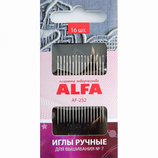 Набор состоит из 16ти одинаковых игл для ручной вышивки. Чтобы использовать нить в несколько сложений, ушко сделано вытянутым. Кончик иглы – скруглённый.