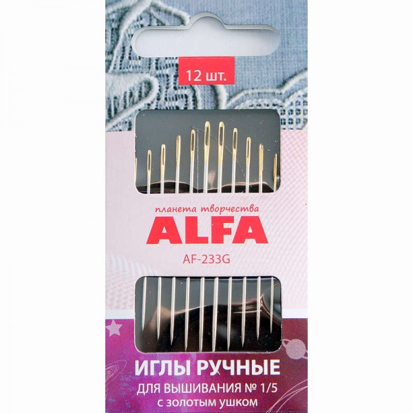 Специальные иглы для ручной вышивки с золотым удлинённым ушком. Кончик иглы слегка закруглён, чтобы не повредить ткань при работе. В комплект входят иглы разно длины: для «крестика» - короткие, а для различной глади – длинные.