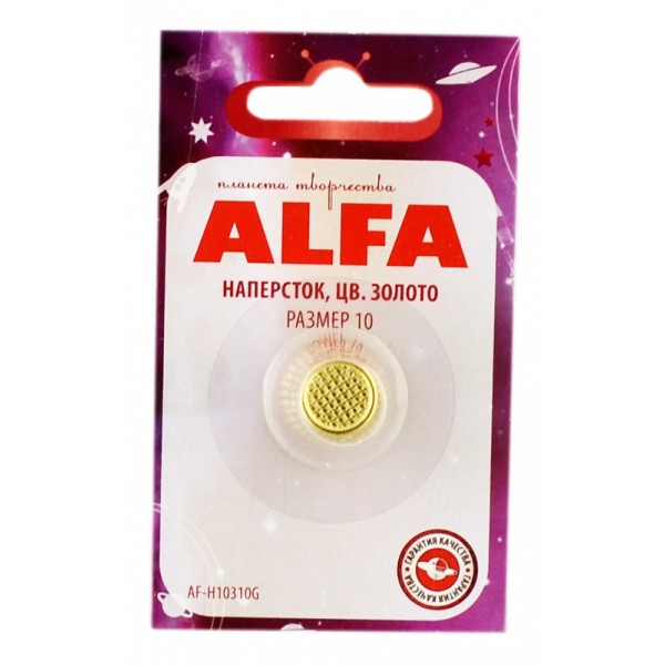 Золотистый напёрсток для защиты пальцев руки при ручном шитье. Размер 10. Упаковка: картонный блистер.