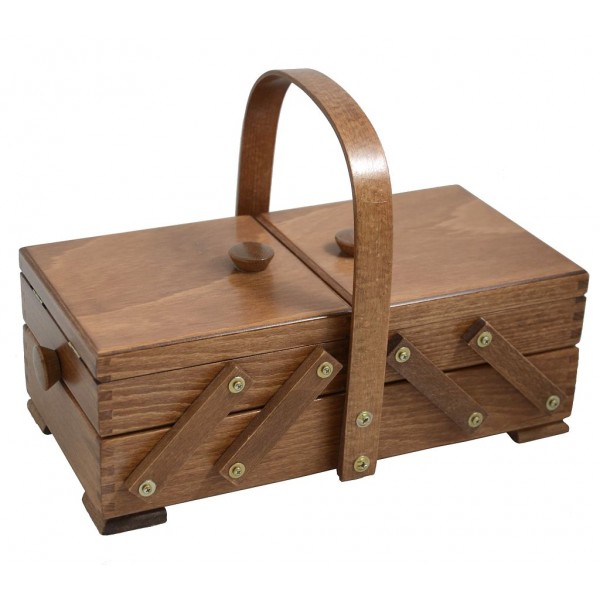 Качественная шкатулка из натурального дерева с раздвижной конструкцией. После раскрытия образуются три яруса для необходимых швейных принадлежностей.