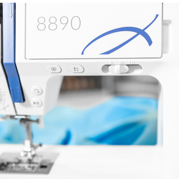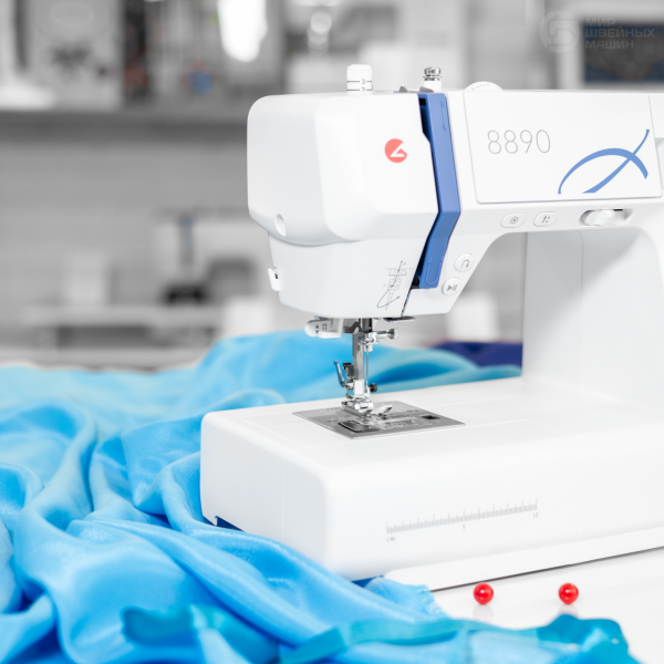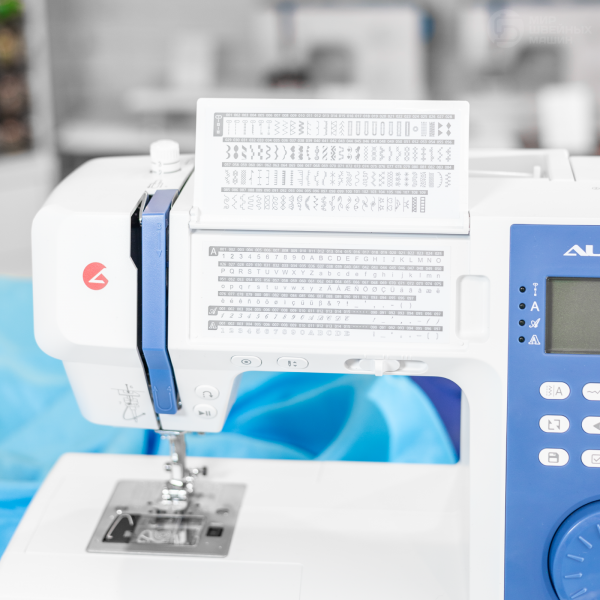 Оборудованная горизонтальным челноком, машина предлагает мастеру 400 операций - здесь есть все виды строчек и алфавит, а также 9 вариантов для прорезной петли-автомат. Собственную комбинацию стежков можно сохранить в памяти (4 группы по 20 ст.). Все настройки отображаются на дисплее, можно выполнить отзеркаливание и растягивание стежков. Конструкция модели включает подсветку и нитевдеватель, рукавную платформу и возможность настраивать скорость шитья. На корпусе расположены кнопки автозакрепки и позиционирования иглы, Старт/Стоп и реверс.