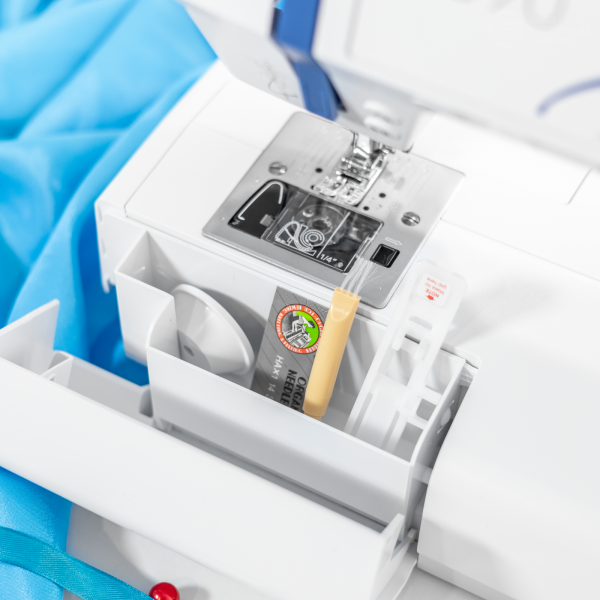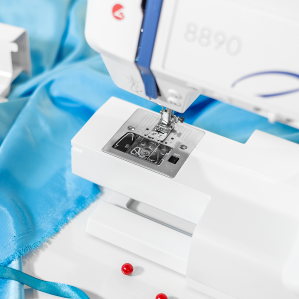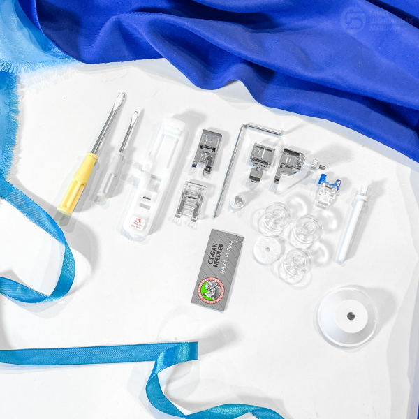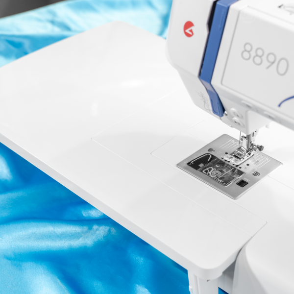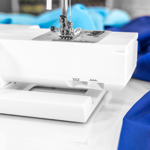 Вы сможете шить изделия большого размера с большим комфортом благодаря приставному столику (в комплекте!). Также прилагаются 7 прижимных лапок и другие аксессуары.