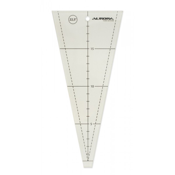 Для раскроя клиньев существуют специальные линейки. Эта модель изготовлена из прозрачного пластика и имеет нижний угол в 22,5 градуса. Используется для блоков «дрезденская тарелка», а также «барджелло».