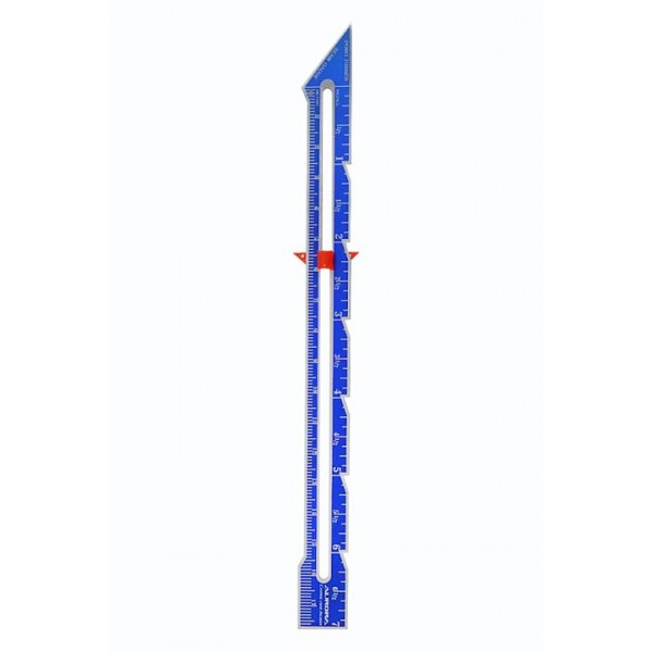 Прочная линейка из алюминия с маркировкой с см и дюймах. Имеет удобный фиксатор красного цвета.