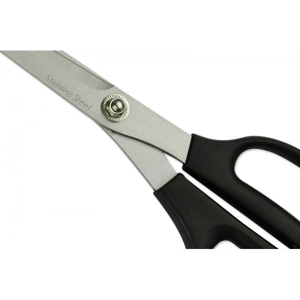 Ножницы выполнены из качественной стали и могут использоваться в любой руке (правой или левой). Длинные острые лезвия предназначены для тканей средней плотности и тонких.