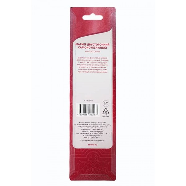 Маркер имеет разную толщину стержня с двух сторон - 1 и 0,5 мм. Линия исчезает со временем или от воды. Предварительно проверьте на образце!