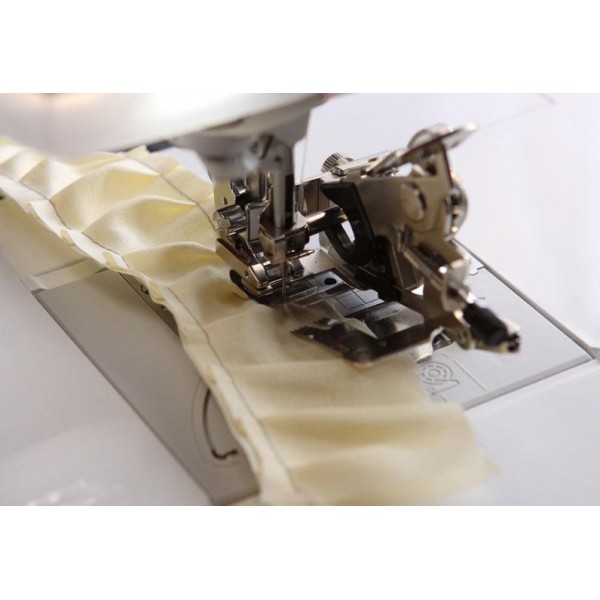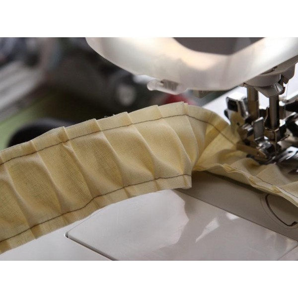 Специальный аппарат выполнит для Вас аккуратные складки и сразу пришьёт их к основной детали.
