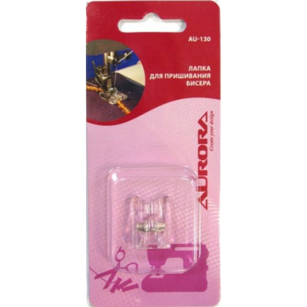 Подошва этой лапки выполнена из прозрачного пластика. Она имеет углубление, которое легко пропускает бисер, бусинки, шнуры (до 4х мм диаметр).