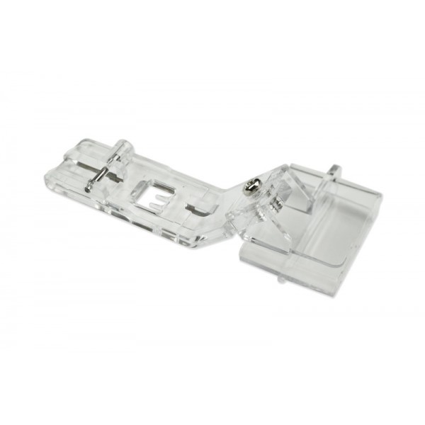 Установив прозрачную лапку специальной конструкции можно быстро выполнить аккуратную подгибку края на 2,5 см.