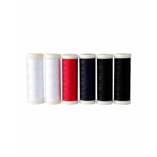 Набор Aurora AU-2603 включает шесть полиэстровых катушек. В каждой катушке 200 м ниток.