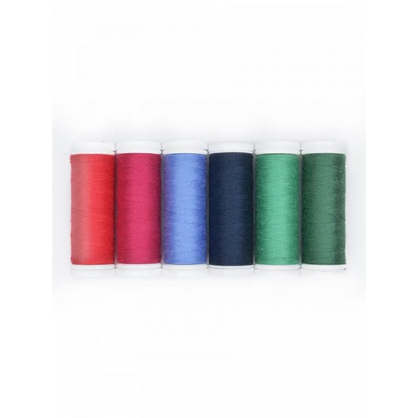 Набор Aurora AU-2617 включает шесть полиэстровых катушек разных цветов. В каждой катушке 200 м ниток.
