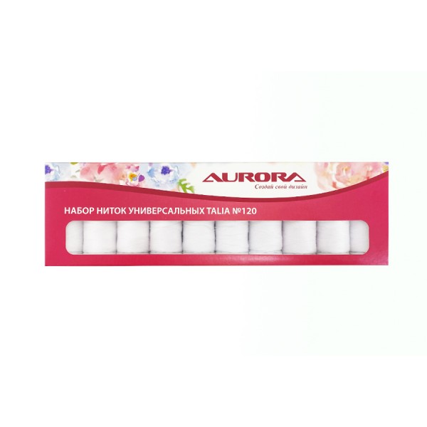 Набор Aurora AU-2618 включает десять полиэстровых катушек в удобной коробке. Цвет белый. В каждой катушке 200 м ниток.