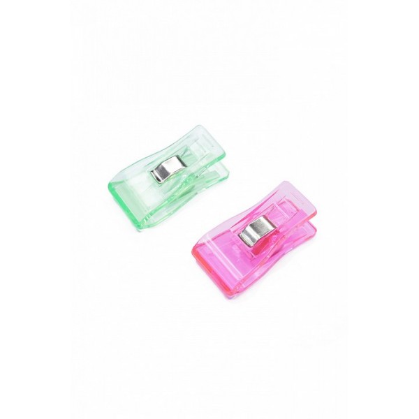 Десять клипс для надежной фиксации нескольких слоев ткани. Есть разметка припуска, нижняя сторона плоская. Есть отверстие для крепления к стене. Подходят при работе со швейной машиной или оверлоком.