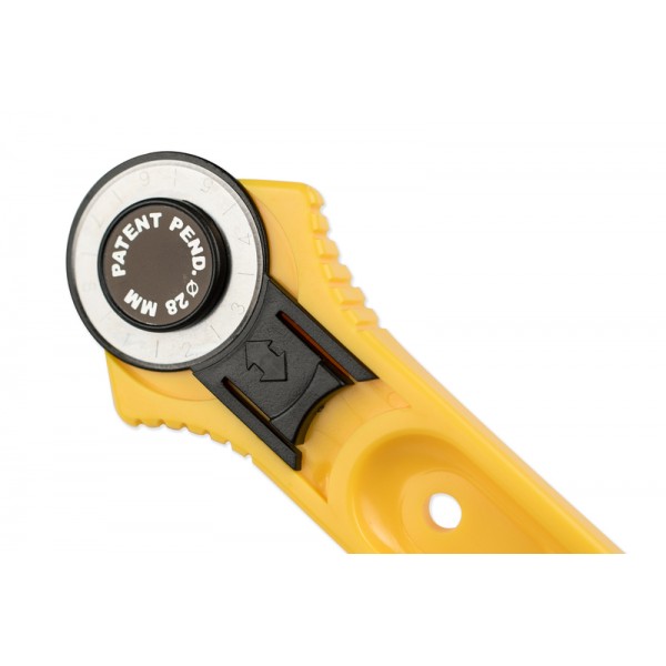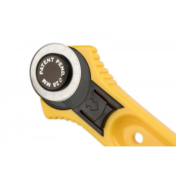 Чтобы точно раскроить детали для аппликации, лоскутных блоков или скрапбукинга, можно использовать специальный инструмент с дисковым лезвием. После работы лезвие задвигается внутрь корпуса.