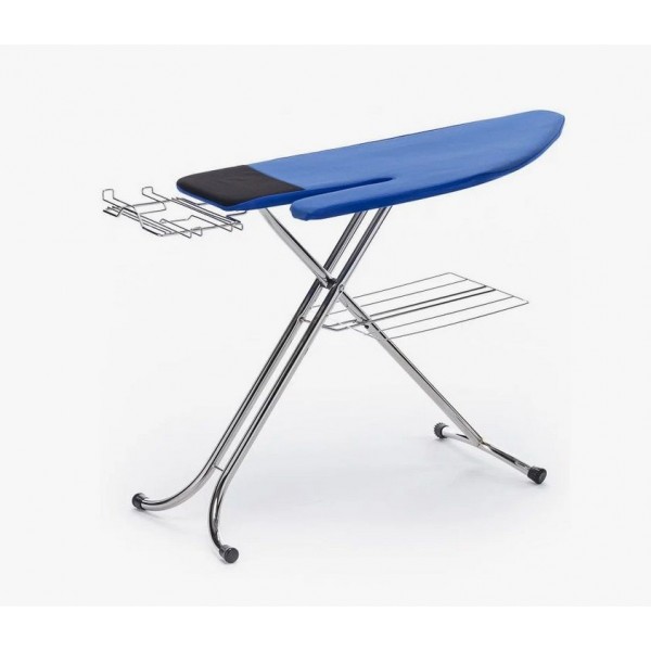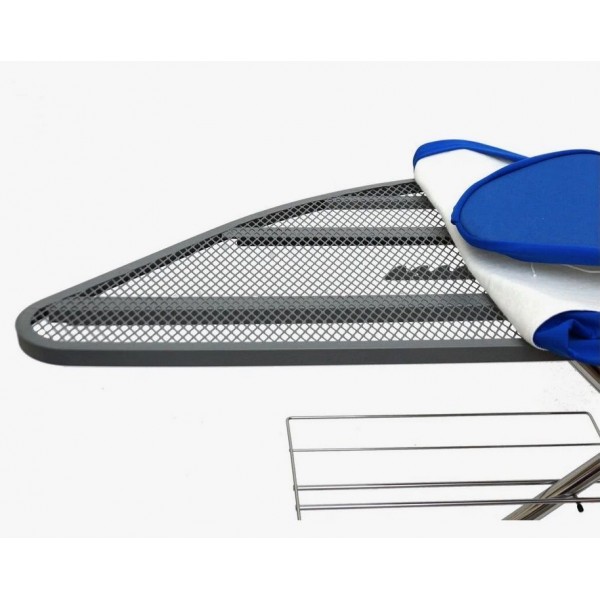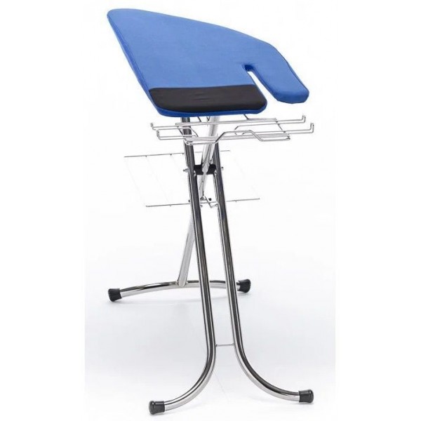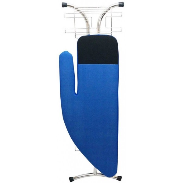 Конструкция доски отличается устойчивостью и просто складывается для хранения. Чтобы работать с большим объёмом пара, гладильная поверхность сделана из оцинкованной металлической решётки. Рукавная часть доски позволяет с комфортом разглаживать рукава и штанины. Надёжный чехол из поролона, войлочной подкладки и верхнего покрытия затягивается на шнур и даёт отличную поверхность для скольжения подошвы утюга. Высота доски регулируется, а имеющиеся подставки позволяют установить парогенератор, утюг и повесить вешалки. Такая гладильная доска необходима для работы с парогенератором или мощным утюгом.