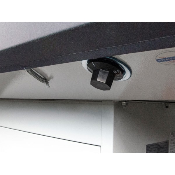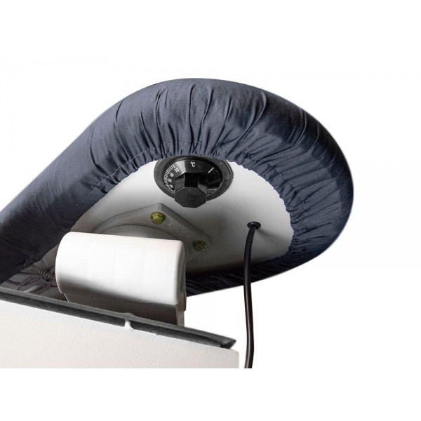 Конструкция стола предусматривает регулировку высоты, а общий размер (с учетом подставки для утюга), составляет 166,5х80х78-85 см. Для гладильной поверхности использована стальная сетка, а наполнитель чехла выполнен из спонж-губки. Основание оборудовано пластиковой защитой, также есть влагозащита у двигателя. Встроенный мотор имеет низкий уровень шума.