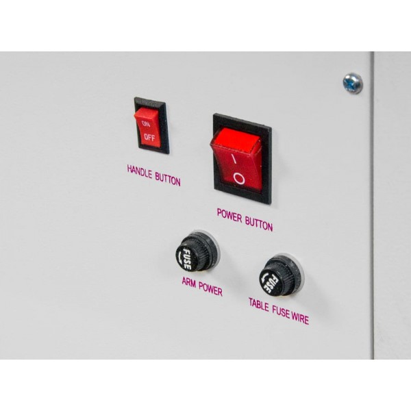 Стол оснащен двумя рукавными поверхностями с мощностью нагрева 450 и 200 Вт. Мощность нагрева поверхности стола - 1000 Вт.