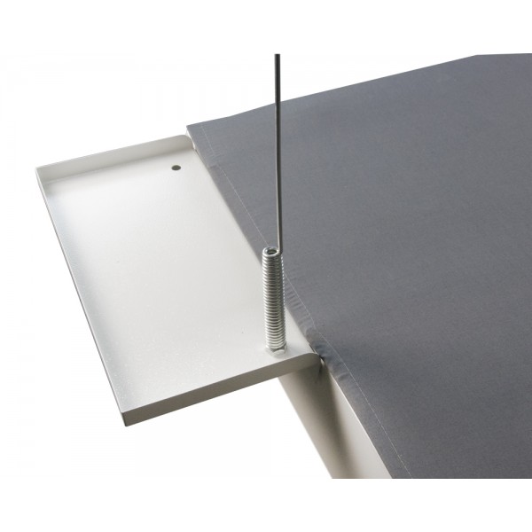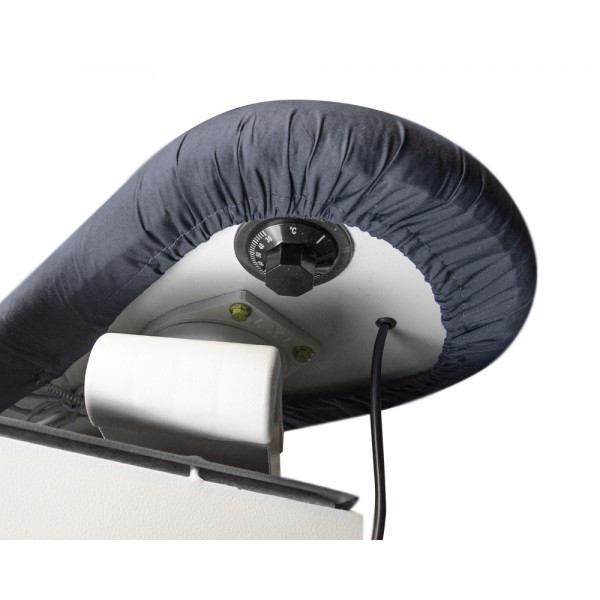 Конструкция стола предусматривает регулировку высоты 78-85 см. Для гладильной поверхности использована стальная сетка, а наполнитель чехла выполнен из спонж-губки. Основание оборудовано пластиковой защитой, также есть влагозащита у двигателя. Встроенный мотор имеет низкий уровень шума.