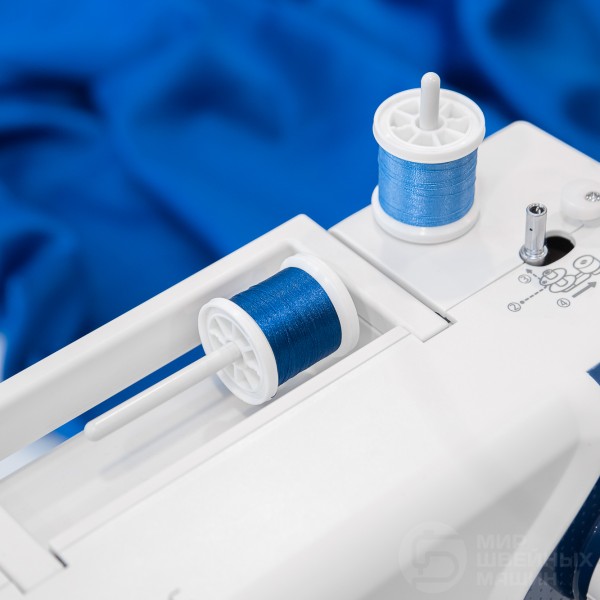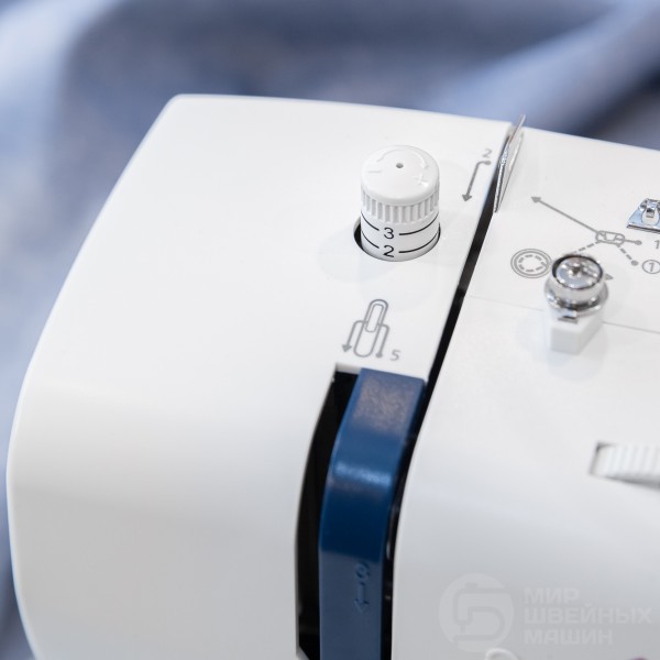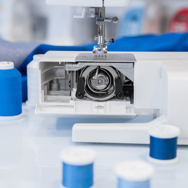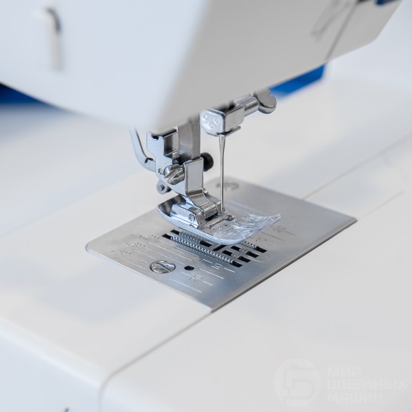 Модель основана на вертикальном челноке и оборудована усиленным типом двигателя с двойным приводом, что в сочетании с регулировкой давления лапки и мощным проколом иглы позволяет получить отличное качество шитья по плотным тканям. Семнадцать операций включают полуавтоматическую петлю. Есть изменение хода строчки (реверс) и подсветка. Предусмотрена возможность шить на рукавной платформе и двойной иглой.
