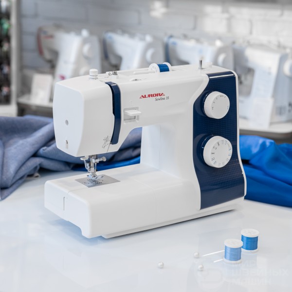 Aurora SewLine 35 рассчитана на работу с тяжелыми материалами и станет надежным помощником в домашнем пошиве для любого мастера.