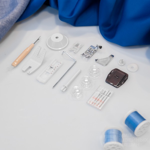 Комплектация включает тефлоновую лапку, а также специальную пластину для прохождения трудных мест (с перепадом высот).