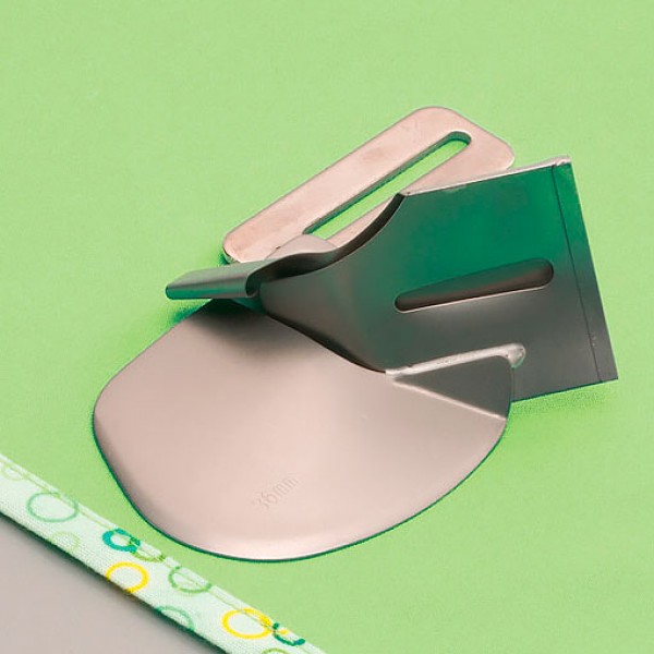 Улитка обеспечивает двойной подгиб ленты, канта или косой бейки (ширина 36 мм). Одновременно с подворотом, улитка пришивает деталь к краю модели. Идеальна для обработки вырезов на многослойных и трикотажных тканях, моделей с неровными краями. Советуем сделать тестовый образец.