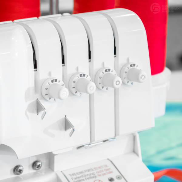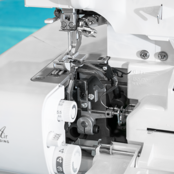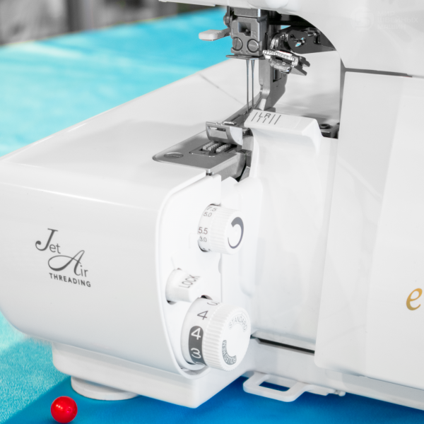 Оверлок оборудован автоматической заправкой петлителей Jet-Air Threading™, которая использует поток воздуха для моментального вдевания нитей. Дополнительный механизм также упростит заправку игл. Система Micromatic Twin Cam Tension System™ отвечает за оптимальное натяжение нитей в ходе шитья и позволяет получить лучшее качество на каждой ткани. Модель оборудована дифференциальной подачей и допускает регулировку давления лапки. Переключение на 2-ниточный шов выполняется элементарно, благодаря прикреплённому конвертеру. Предусмотрен общий регулятор длины и ролевого шва. Оверлок использует вертикальный прокол игл и совместим с битовыми иглами 130/705H. Подсветка изготовлена из светодиодных элементов.