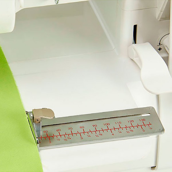 Регулируемый ограничитель для работы с коверлоком BLES-8 Ovation, чьё расстояние от правой иглы до корпуса значительно увеличено. Предназначен для выравнивания края и прокладывания аккуратной строчки на всём протяжении шва.