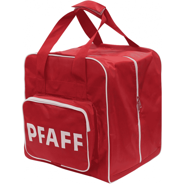 Удобная и красивая сумка для оверлока с фирменной надписью Pfaff. Мягкие стенки хорошо держат форму за счёт поролоновых вставок. Есть наружный карман спереди. Основная застёжка - молния с двумя бегунками.