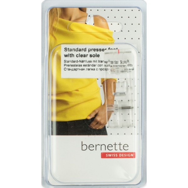 Лапка стандартной конструкции из прозрачного пластика облегчает работу со швами, где есть разметка и важно соблюсти точное позиционирование.