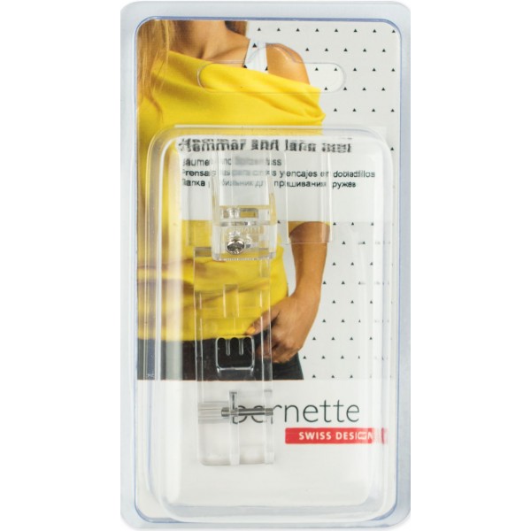 Такой лапкой можно аккуратно вшить кружево или другую тесьму под кант, образуя подрубочный шов (ширина складки 1 см).