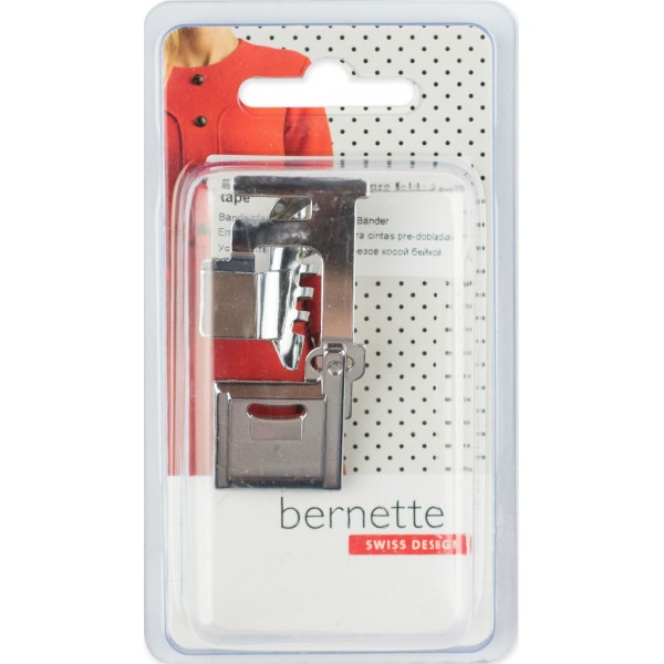 Используя готовую косую бейку можно выполнить быструю окантовку специальной лапкой. Ширина бейки в раскрытом состоянии - 23 мм, готовая окантовка - 5-7 мм.