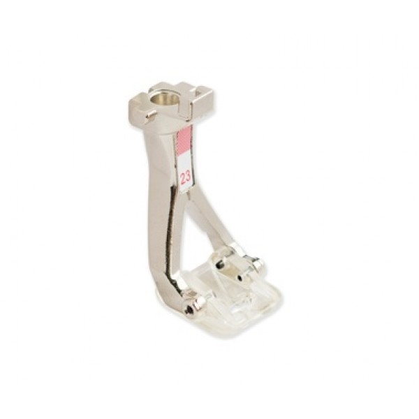 Лапка со специальной конструкцией для притачивания аппликаций. Подошва с желобком 2 мм служит для лёгкого продвижения вышитых или неровных участков, а также обеспечивает точность подгонки шва и отличную манёвренность при шитье по окружности (за счёт расширения желобка к задней стороне).