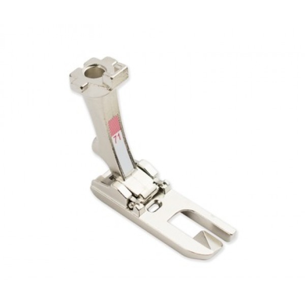 Лапка выполняет запошивочный шов, который полностью закрывает припуск внутрь шва и применяется на джинсовых изделия, сорочках и т.д. Ширина шва 8 мм, что достигается наличием специального углубления на подошве.
