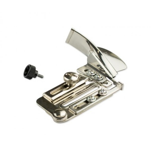 Устройство позволяет сделать окантовку среза изделия фальцованной косой бейкой. Выпускается в трёх размерах, в зависимости от ширины бейки. Оснащено направляющей для равномерного продвижения.
