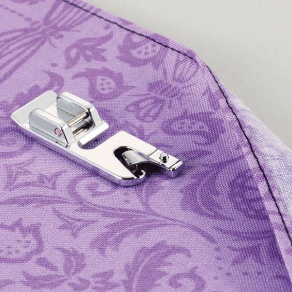 Лапка для аккуратного подшивания края 7 мм. После двойной подгибки материал фиксируется прямой строчкой.