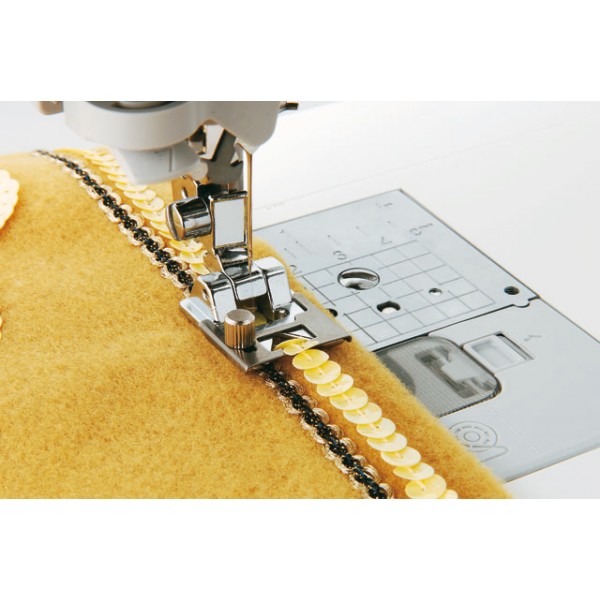 Лапка предназначена для пристрачивания декоративной тесьмы, канта или ленты. Максимальная ширина отделки 5 мм.