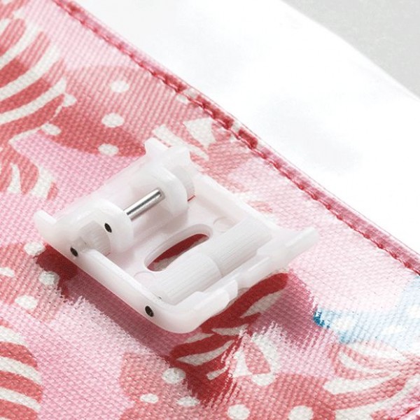 Лапка с роликами используется для работы с кожей, замшей, винилом, а также вельветовыми тканями и т.д.