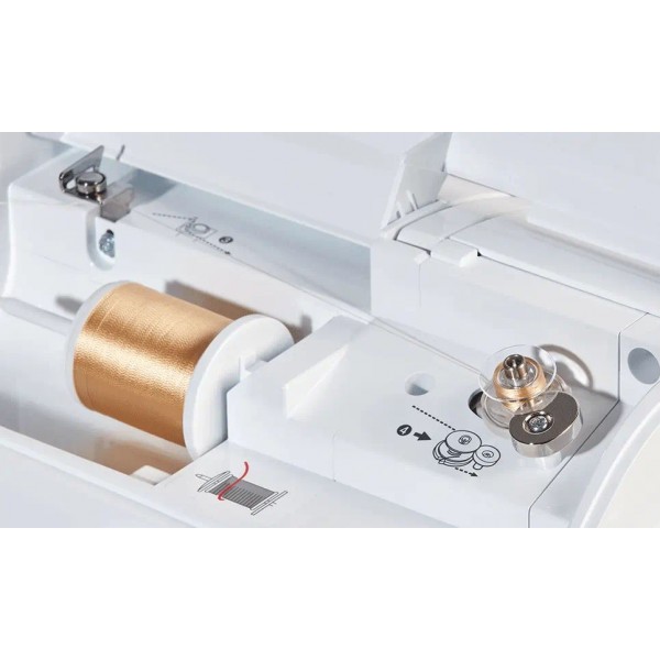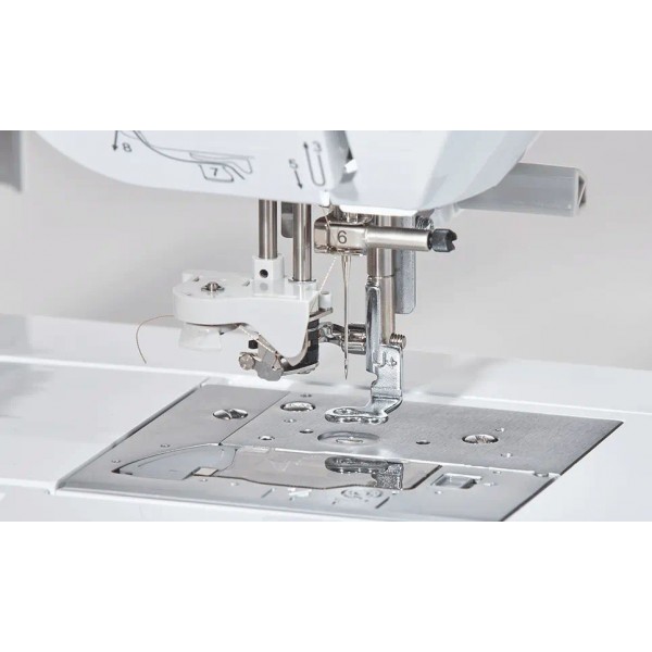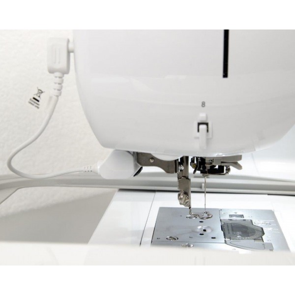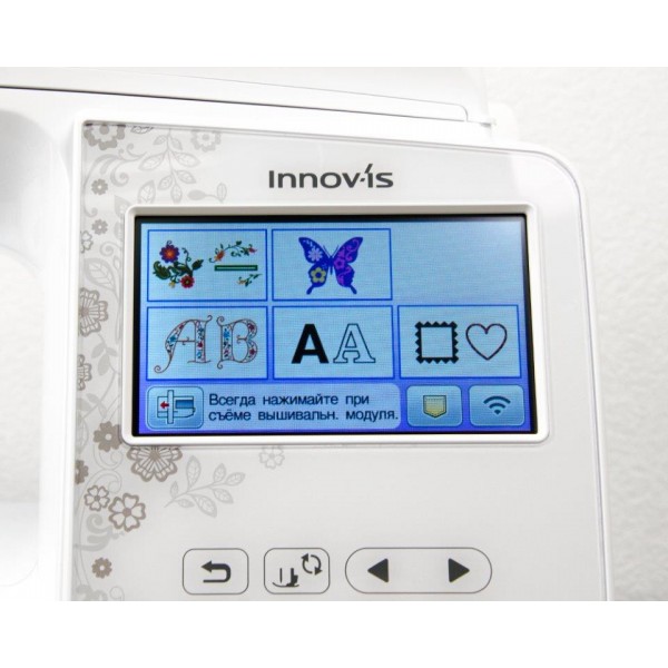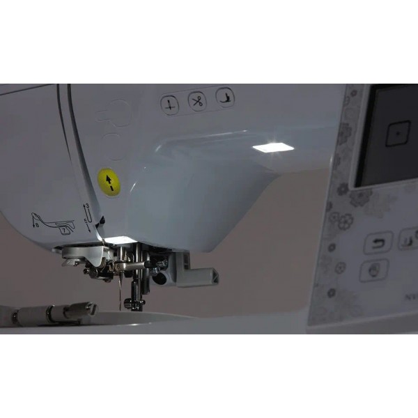 Панель управления машины предлагает большой цветной сенсорный монитор с диагональю 4,9 дюйма. Вы сможете максимально точно установить иглу с помощью LED указки на лапке. В памяти машины записаны 258 дизайнов, есть 13 вариантов шрифтов, также добавлены специальные мотивы для квилтинга. Предусмотрена автообрезка нити. Скорость вышивки может достигать 850 ст/мин. Машину можно запрограммировать автоматически начинать работу при нажатии кнопки Старт/Стоп. Натяжение нитей также настраивается автоматически. Конструкция включает нитевдеватель и яркую подсветку двумя светодиодами. Беспроводное подключение позволяет быстро передать данные с бесплатной программой Design Database Transfer, также есть USB порт.