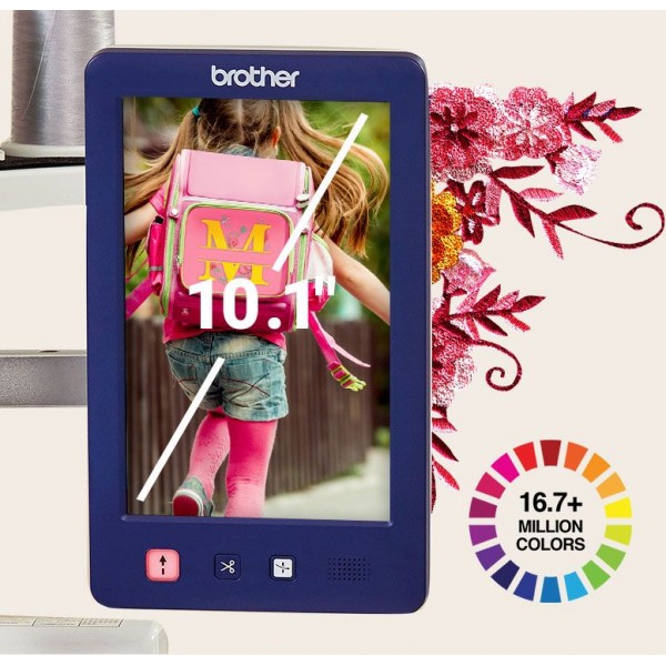 Отзывы экспертов указывают на улучшенное ускорение вышивки: теперь разгон до 1000ст/мин машина берёт за 7 секунд! Предусмотрена возможность нанесения изображения на любую форму: кепки, перчатки, обувь, брюки (с дополнительными пяльцами). Светодиодная подсветка с настройкой комфортной яркости покажет мельчайшие детали работы. На машине установлена лазерная указка для точного позиционирования и стыковки дизайнов. Заправка и обрезка нитей происходят автоматически. Большая коллекция дизайнов включает монограммы и петли. Модель оборудована USB-портом и слотом для SD карт. Используя специальное ПО можно соединить в сеть несколько машин. Широкие возможности редактирования доступны с большим цветным экраном и стилусом. Есть функция сортировки цветов, а также возможность группировки цвета и исключение ненужных цветов. Для каждой иглы возможны индивидуальные настройки. Производитель заявляет о снижении уровня шума и упрощении процесса смазки.