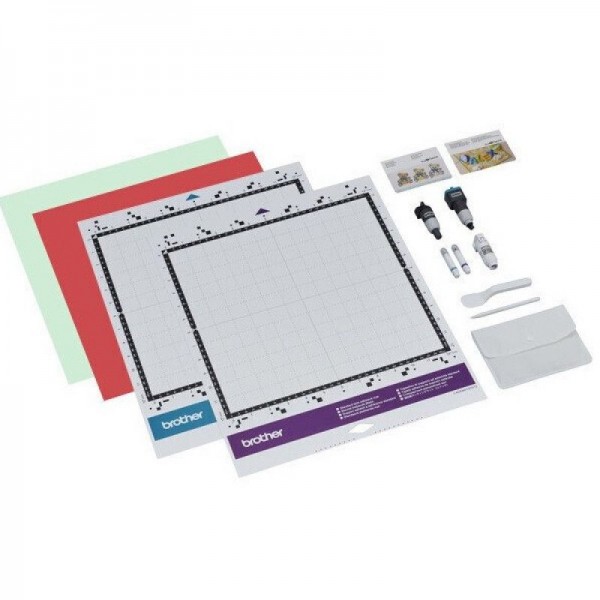 Комплектация Стилус, Лопатка, Держатель маркера, Набор из 2 видов исчезающих маркеров, Автонож (с держателем), Дисковый автонож, Стандартный раскройный мат 305 x 305 мм, Слабоклейкий раскройный мат 305 x 305 мм, Клейкая подложка для ткани 305 x 305 мм, Руководство пользователя Web версия, Краткий справочник, Перечень дизайнов Web версия, Руководство по началу работы и бумага для образца.