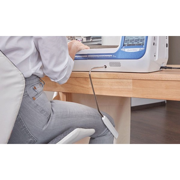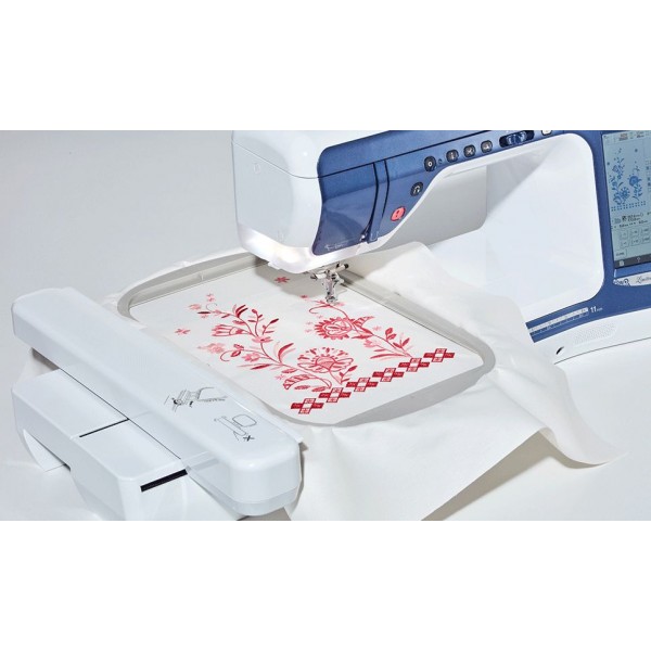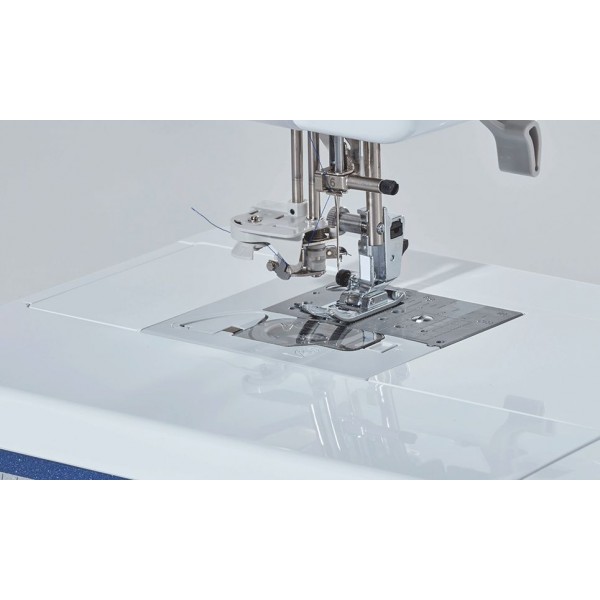 Любители квилтинга также будут рады большому рабочему пространству (28,5 см). Дополнительный комфорт гарантирован автоматическим нитевдевателем, коленным рычагом и программируемым автоподъёмом лапки, подсветкой в нескольких точках с настройкой яркости. Сенсорный экран в 7’ позволяет не только настраивать строчки и дизайны, но и смотреть видеоуроки. Для меню можно выбрать один из 13 языков. Конструкция корпуса включает два порта USB. Современные технологии позволяют контролировать толщину ткани под лапкой в ходе шитья, а также обеспечивают отличное продвижение реек нижнего транспортёра (датчики ICAPS и система SFDS). Машина выполняет широкие декоративные строчки до 4 см и может шить в 4-8 направлениях, а в вышивальном режиме есть автообрезка переходных стежков. Специальная программа выстрачивает «Я люблю тебя» на 15 языках, а всего модель поддерживает 17 шрифтов.