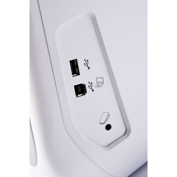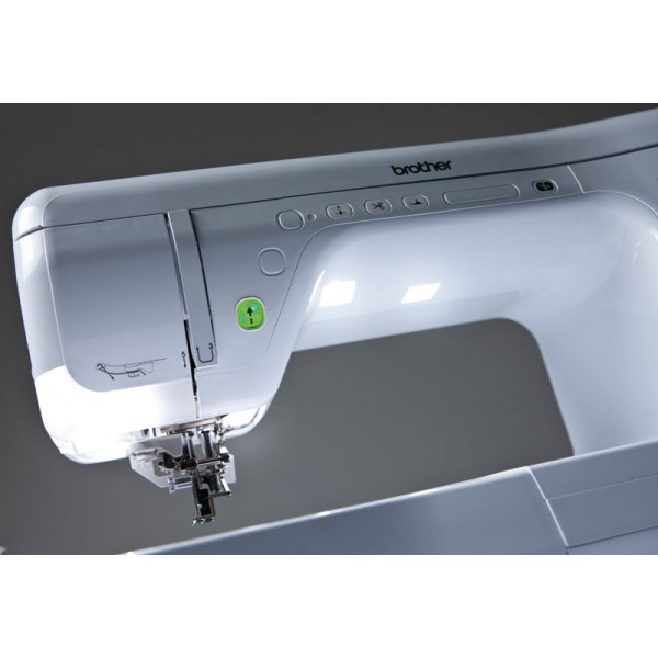Машина выполняет вышивку размером до 20х30 см. Отличные отзывы заслужила и увеличенное рабочее поле справа от иглы (285 мм). В комплекте со специальными квадратными пяльцами это даёт возможность выполнять также и фигурную стёжку квилтов. Большой дисплей покажет все подробности 224 рисунков и 17 алфавитов, а также поможет отредактировать, скомбинировать, повернуть или отзеркалить любой проект. Модель оснащена автозаправкой, автообрезкой и сенсорами обрыва нитей. Экономрежим включается во время простоя, а светодиодные лампы экономят энергию и позволяют отрегулировать яркость над пяльцами.