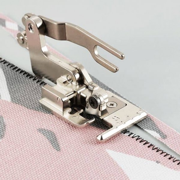 Лапка оснащена дополнительным ножом, расположенным с боковой стороны. Позволяет выполнять строчку с одновременной обрезкой припуска, как при работе с оверлоком. Для машин категории: ABCDEFGHI