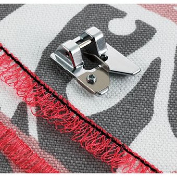Лапка предназначена для создания бахромы путём прокладывания объёмной строчки зиг-заг, затем прямой строчки сверху и финальной обрезки с изнаночной стороны.