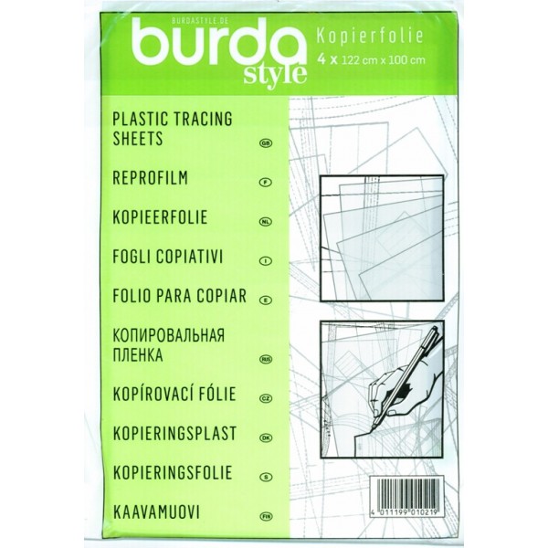 Прочная плёнка для переноса любых выкроек. Материал прочнее стандартной кальки, поэтому срок его службы больше. В наборе 4 прозрачных листа размером 122х100 см.